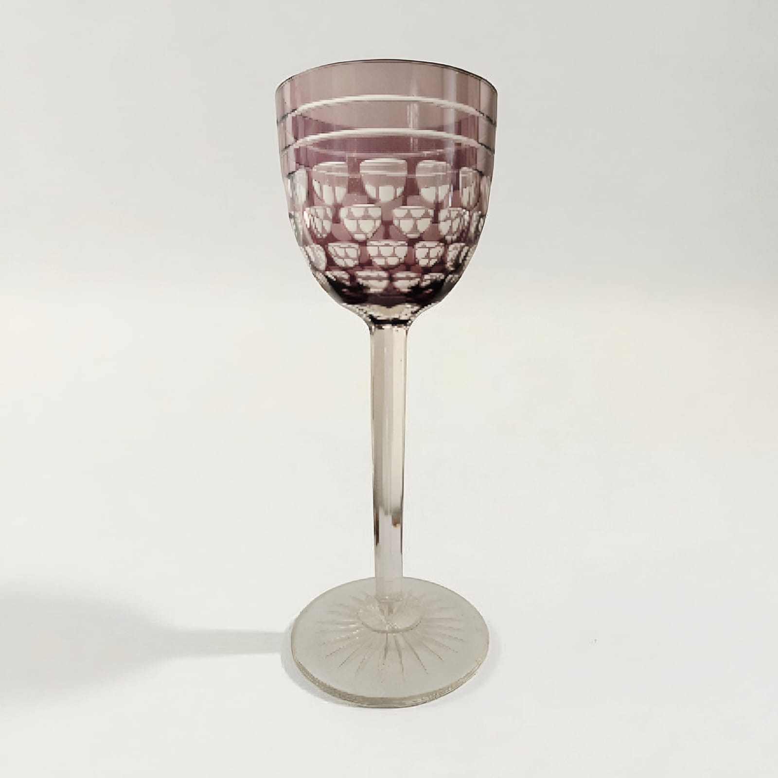 Taça de Vinho em Cristal da Boêmia Lapidado - Cor Violeta - 19,5 cm