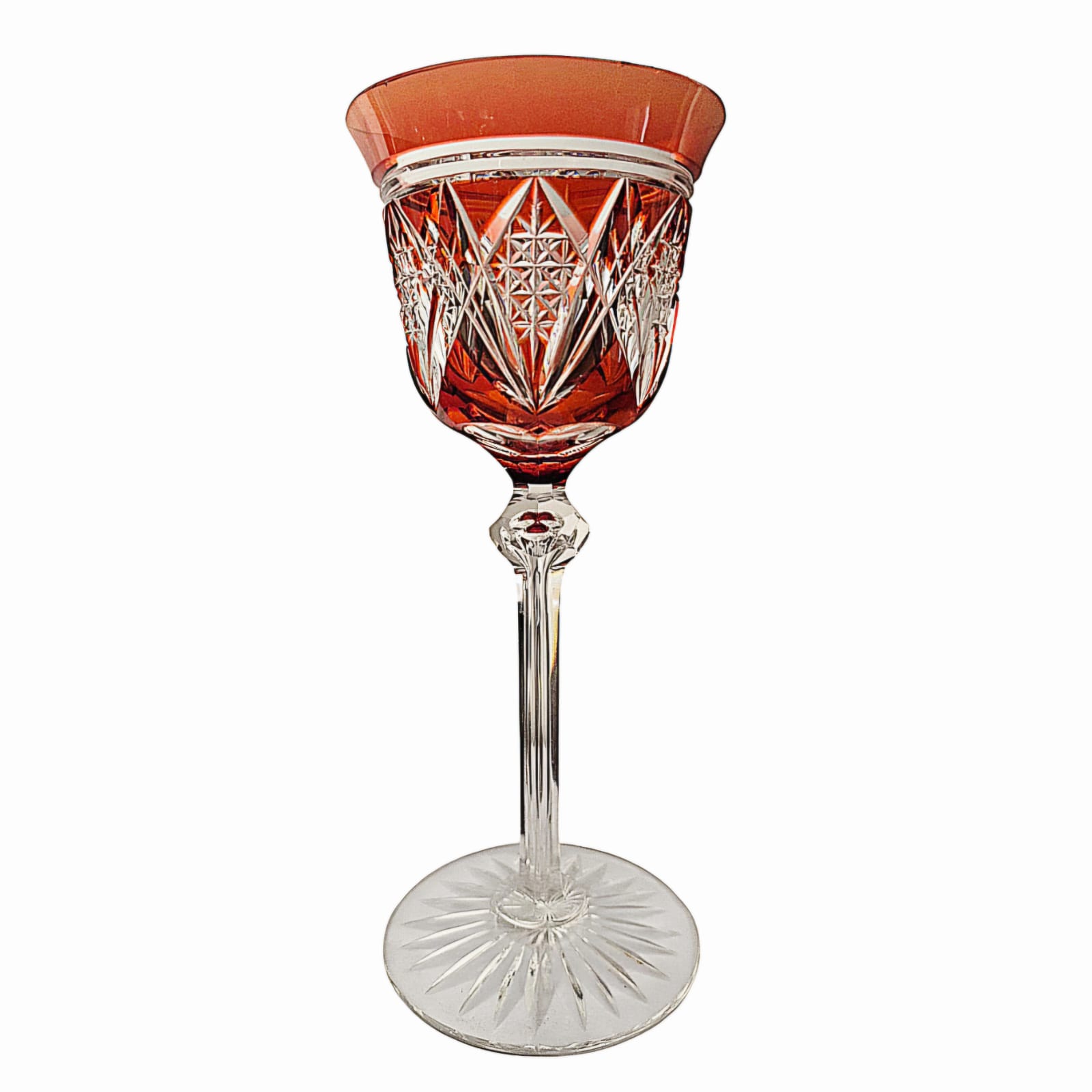 Taça de Cristal Lapidado Estilo Val Saint Lambert Taça de Vinho Cristal Overlay Lapidado - Estilo Val Saint Lambert - Vermelho Cereja 19cm : Cristal de Coleção, Atribuído a Manufatura Belga Magnífica taça em Cristal Overlay (dupla camada) lapidado, com características de design e manufatura que remetem à renomada Val Saint Lambert (VSL) da Bélgica.** Uma peça de arte colecionável, ideal para servir ou decorar. O estilo da lapidação e a técnica *overlay* (cristal colorido sobre cristal transparente) sugerem a qualidade da Val Saint Lambert (VSL), embora a taça **não apresente selo ou assinatura visível** da marca. Cristal Lapidado Overlay. O bojo é composto por uma camada externa de cristal colorido e uma interna transparente, maximizando o efeito da lapidação. Intenso Vermelho Cereja (Ruby Red) no bojo. Lapidação manual profunda, típica de cristais de alta qualidade europeus, com motivos geométricos e estrelares (*Star and Diamond Cut*), criando um belo contraste entre o vermelho e as áreas transparentes. * **Haste:*** **Base (Pé):** Em cristal transparente com lapidação detalhada em raios ou estrelas, padrão clássico de peças de época. 19,0 cm de altura total.** Excelente estado de conservação, peça de colecionador. Esta taça representa a excelência das manufaturas de cristal europeias do século XX. O trabalho de lapidação é minucioso e demonstra uma alta precisão técnica, características valorizadas em peças de mestres vidreiros como os da Val Saint Lambert. Perfeita para degustação de vinho ou como peça de destaque em cristaleiras. O preço refere-se a **01 (uma) unidade** da taça. Será enviada com embalagem profissional e segura, garantindo a proteção do cristal. **Uma peça de alta qualidade e beleza para enriquecer sua coleção ou sua mesa.** **Dúvidas?** Estou à disposição no campo de perguntas. Sem garantia
